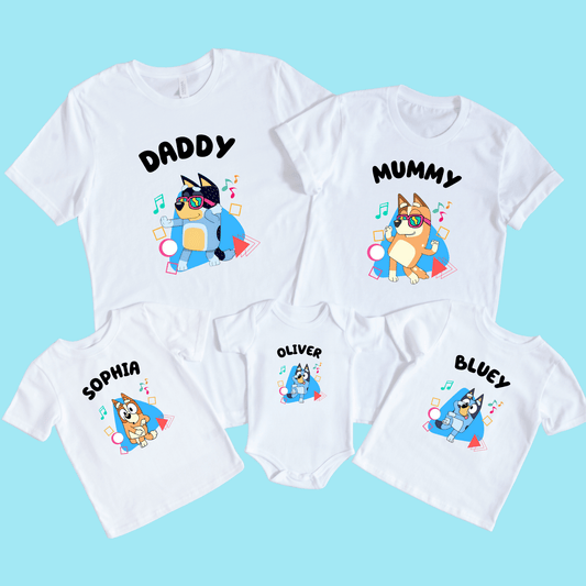Personalised Dancing Bluey Family Tshirts